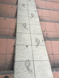 東神奈川駅の西口に黒い足跡が続いていて気になっています。ちょっと気味が悪いのですが調べてほしいです。