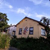 中区西之谷町の住宅街にある一軒家の外壁にミツバチの絵が大きく描かれています。今はだれも住んでいないようですが、だれがどんな経緯で描いたのかとても気になります。調べてください。