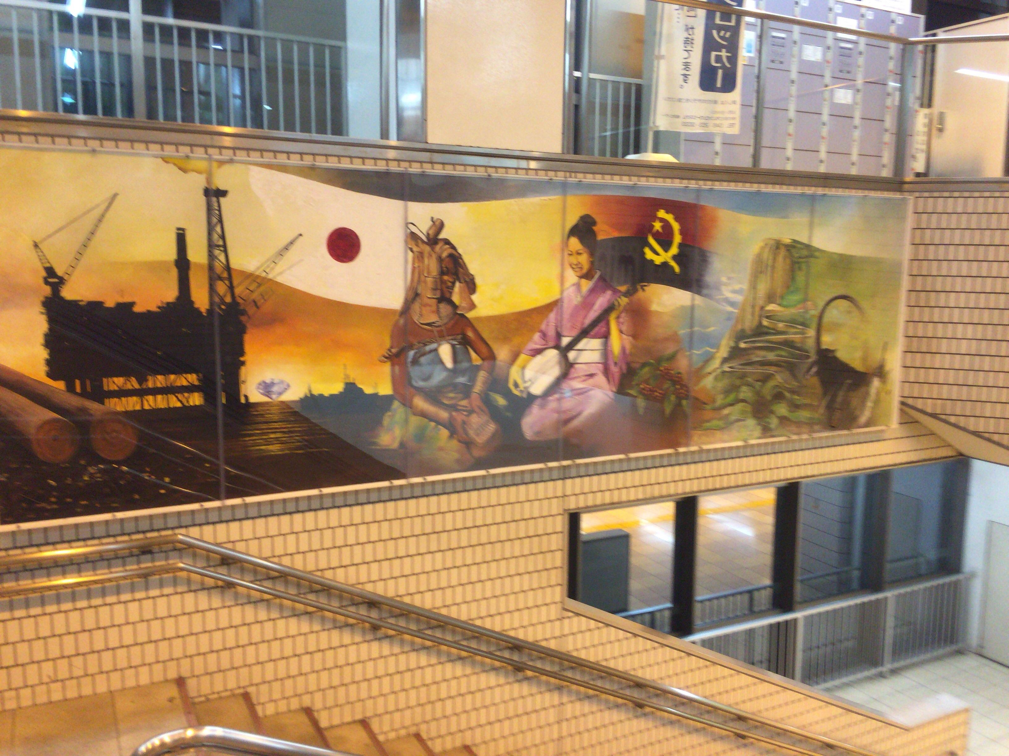 センター北駅の階段横に飾ってある謎の絵画が気になります。