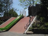 年に一度帰省の度訪れる保土ヶ谷区新桜ヶ丘第五公園。以前S字型のすべり台があり子供が大好きだったのですが、数年前直線に変わってしまいました。その後もすべり台横の両脇にある急坂をの登れるようになっていてそこそこ楽しめたのですが、その1年後ぐらいには「危険なので坂を上ってはいけません」との看板が。こんなことなら元のS字の方が楽しめたのに。事故でもあったのでしょうか。訪れるたびに気になっています。