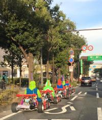 元町でマリオカート軍団を見かけました。ワクワクしました!(チラっと顔を見たら外人さんが乗っていたようです。)チーム名や活動拠点、メンバーさんたちが気になります!