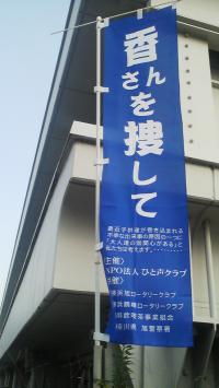旭区役所前に、「香さんを探して」の幟が何本も立っていました。平成3年10月1日午後、自宅付近から所在不明となって23年になります。この件を知らない方も多くなったと思います。解決へ近づくために調査していただきたいと思います。