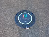 川崎駅前に、川崎市のマークが入ったマンホールを発見。ステンレス?で縁取られたデザインは珍しいですね。作った理由とか、今後増やしていく予定とか取材をお願いします。