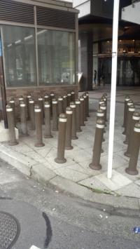 桜木町駅前のブリーズベイホテルの前の歩道に鉄柱が40本程、所狭しに並んでいます。これだけ並ぶと可愛くも見えます。何の為に設置されているのでしょうか?