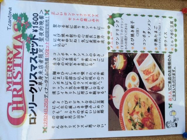 | 2015/12/24 | 平沼橋の中華料理店にある、独り身でさみしい人でも心が温まる「クリスマス限定」メニューとは? | ![]() |