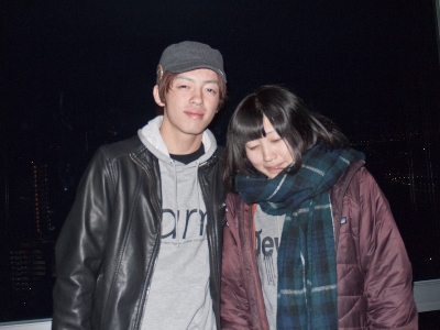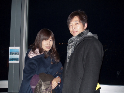 中華街のカウントダウンを楽しんで、こちらにやってきたふたり。マリンタワーにも興味があり、ここで初日の出を迎えることに。