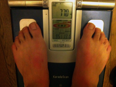 体重は朝一に測ってもらっているので自己申告。「嘘言っていません?」と聞いたら、今朝、証拠の写真を得意げに持ってきてくれました。「ちゃんと測ってるでしょー!」と自信満々でしたが・・・いやいやいやいや。私の目は体重の数値に釘付け。昨日の0.1kg減に続き今日は0.2kg減。・・・停滞期??(編集部:三橋)