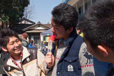 飴細工を中心にポーズ。舐めているのはその名もペニスさん。