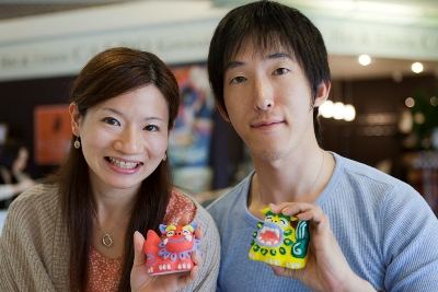 ノゾミさんとケンジさんの二人は恋人同士。楽しげにシーサーを塗っていました