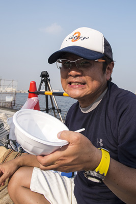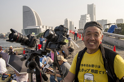 フィルムカメラとデジタル、両方を三脚にセットしていたヨコタさん。先日の隅田川花火大会にも