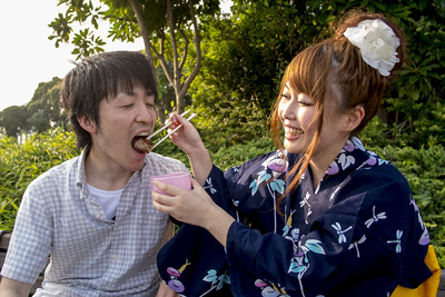 「花火だから浴衣で」と相談してやってきた地元のおふたり。