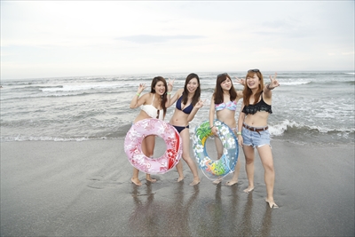同級生4人組も海を満喫中! 笑顔がはじけてます!!