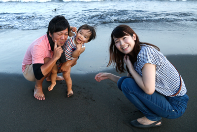 3人で夕方の海岸をお散歩!