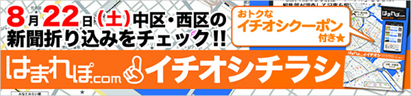 このたび、はまれぽ.comでは、8月22日(土)に中区及び西区の全紙に「はまれぽイチオシチラシ」を配布いたします。こちらのチラシには、はまれぽが自信を持っておすすめするイチオシ店舗のおとくなクーポンが付いておりますので、どうぞご期待ください。