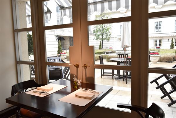 美しい中庭を望むことができる店内
