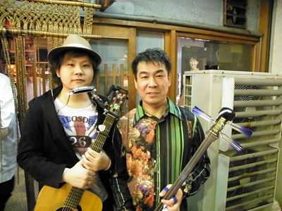 津軽三味線&ギターの、岩間哲也さん(右)