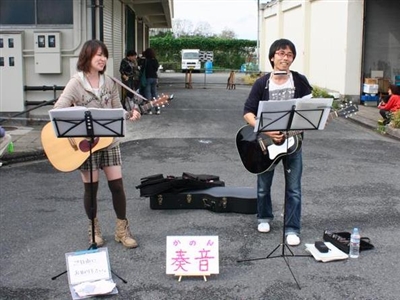 ステージではなく、敷地内の路上でギターと歌を奏でていらっしゃいました。