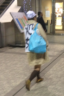 確かに東戸塚駅に出没!調査日が11月中旬だったからか、帽子を被り、冬服に「処女」と書いたゼッケンを貼付けていました。ただ残念ながら、取材はお断りとのこと。