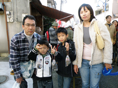 「マグロの解体ショー」で切り身を購入した、富永さん親子