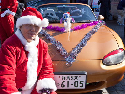 クリスマスデコレーションも楽しい。板長さんの愛車は、ナンバーもロードスター