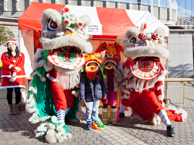 中華街コンシェルジュの方は、普段もお子さんたちに獅子舞を教えているので、「その紐はあんまり強く引っ張ると獅子が痛がって噛みつくよ」と、楽しい口調でレクチャーしていました。