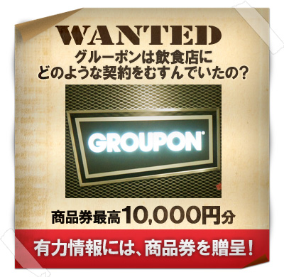 はまれぽでは、グルーポンと飲食店間に結ばれる契約の情報を募集中!!