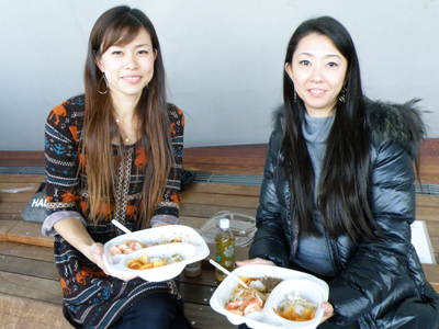 出場者の、渡辺さん(左)と佐藤さん(右)見た目でおいしそうなお店を選びました