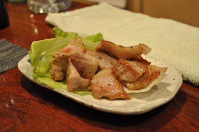 豚トロなどのツマミは気分次第で日替わり。2皿で500円