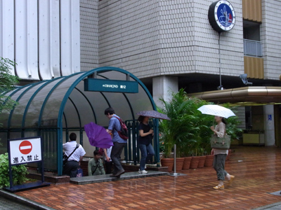5番出口(左)と10A出口(右)。出口を出るとすぐに傘が必要だ