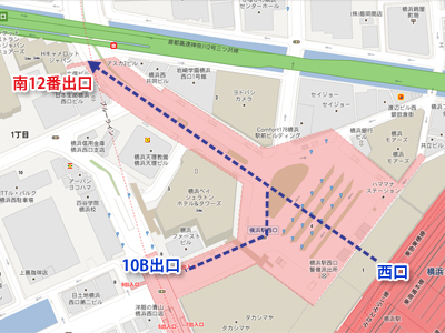 さて、今回の調査方法だが、地下鉄も含めて横浜駅にある全19の出口をもれなくチェックしていく中で、出口から雨に濡れずに歩いて行けるルートを探し出し、最終的にどこまで行けるのかを西口側と東口側でそれぞれ結論付けるという方法を取った。