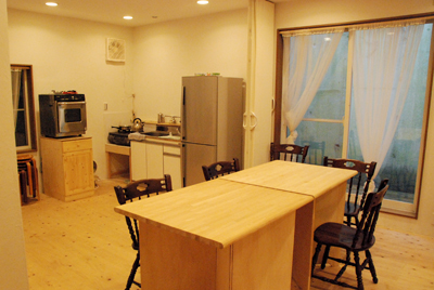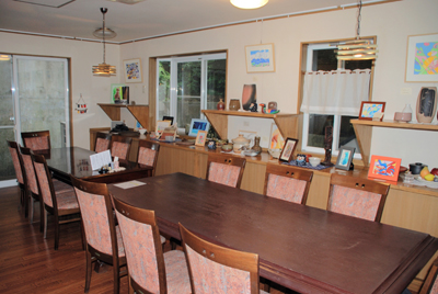 玄関でスリッパに履き替えると、思わず「おじゃましまーす」と言ってしまう。玄関の右手には自然食品の販売棚が並び、その奥にはダイニングが広がっていた。