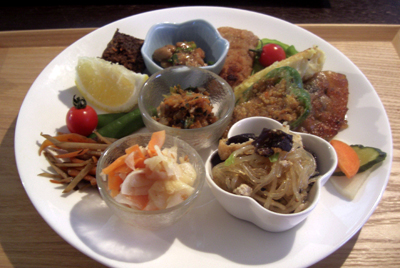 日替わりのマクロビオティック定食(1,200円)もあるが、数量に限りがあるので、できるだけ予約しておいた方がいいだろう。この日のメニューを一例として紹介しよう。
