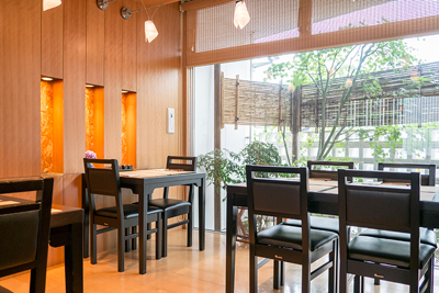 テーブル2~3台毎にゆったり仕切られた落ち着いた店内