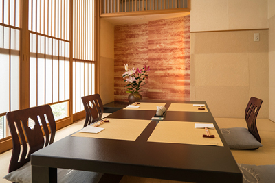 しま村の2階はお座敷。10%のサービス料が必要だが、洗練された和の個室は落ち着ける雰囲気。