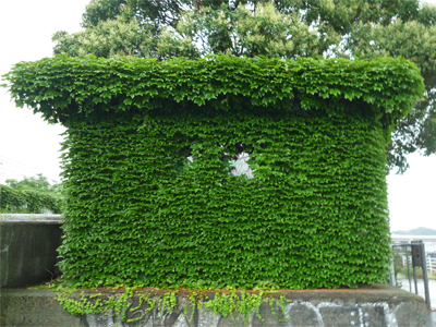 わずかに窓が見えるが、ほぼ植物に覆われていて怖い