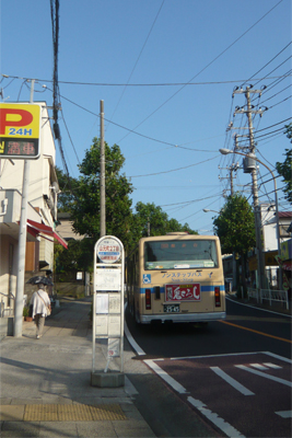 バスは横浜駅から野毛坂へ。「無事に帰ることができるのか…」と考えていると、あっという間に30分が経ち、「根岸共同墓地」最寄のバス停に到着。