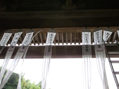 施餓鬼幡(せがきばた)と呼ばれる、各如来の名が記された布が下げられている