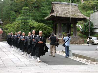 修行中のお坊さんは墨染の僧衣に草履で列をつくって入堂