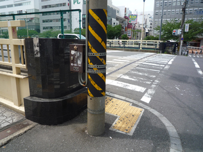 横浜西口のビブレ前の、NTT側の橋にある横断歩道があります。今まで気にもせず通行してましたが、両端が見事に橋の欄干にぶつかっています。どうしてこうなったのか経緯を調べて下さい(たにけいさんのキニナル)