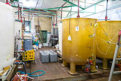 タンクが並ぶ工場内。1日2000ℓを製造できる