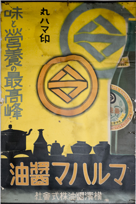 なるほどと思いながら見渡すと、壁に浜菱マークが描かれた「マルハマ醤油」という昔のポスターが飾られていた。