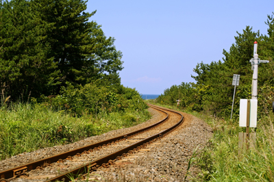 陸奥横浜駅に向かうJR大湊線は単線だ。いい感じ…