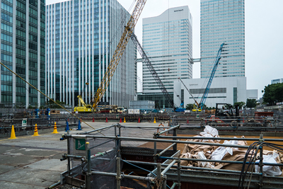 現在は工事中。秋には建物の上部が見えるようになる