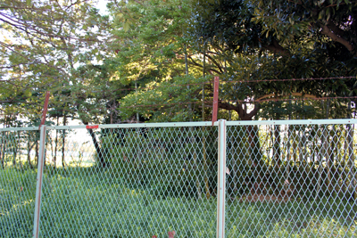 再び、広場の周囲を歩いてみたが、フェンスでぐるりと取り囲まれている。