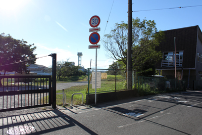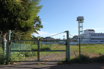 「泣き塔」が近くにあるらしい「富士塚小学校入り口」交差点のすぐ横には、フェンスで囲まれた広大な広場がある。ここは鎌倉市が管理している「深沢多目的スポーツ広場」という所。インターネットで調べた位置からすると、「泣き塔」があるのはこの中のようだが、本当にここにあるのだろうか?
