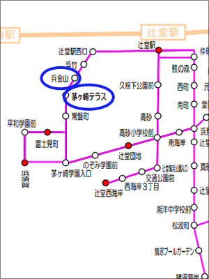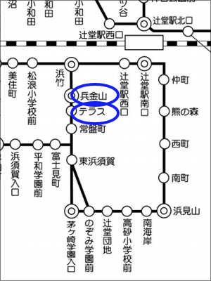 インターネットで「兵金山」と「テラス」というバス停を通る路線を調べてみると、江ノ電バス湘南営業所と神奈川中央交通バス茅ヶ崎営業所が管轄する路線であった。