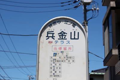 以前にも横浜市港北区にある東急バスの「神隠」というバス停の名前の由来を調べたことがある。バス停の名前は地名から付けられることが多いようだが、今回の「兵金山」と「テラス」はどうなのだろうか。