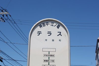 江ノ電バスでは、バス停の正式な名前は「茅ヶ崎テラス」と言うようだが、バス停の表示は「テラス」だけだ。