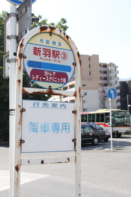 鳥山大橋、北新横浜駅のバス停で乗車する方もおらず、もちろん下車する乗客もいないので、バスはスムーズに目的地へと進んでいく。天気の良い日に貸切状態でバスに乗ることができ、なんだか少し楽しい気分になったのも束の間、新横浜駅を出発してから約10分で新羽駅に到着した。