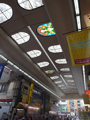 アーケードを見上げてみると、確かにステンドグラスがはめられている。